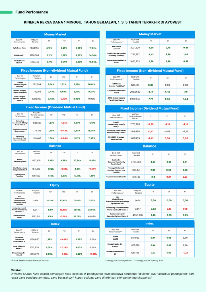 DISCLAIMER: INVESTASI MELALUI REKSA DANA MENGANDUNG RISIKO. SEBELUM MEMUTUSKAN BERINVESTASI, CALON INVESTOR WAJIB MEMBACA DAN MEMAHAMI PROSPEKTUS. KINERJA MASA LALU TIDAK MENJAMIN/ MENCERMINKAN INDIKASI KINERJA DI MASA YANG AKAN DATANG.