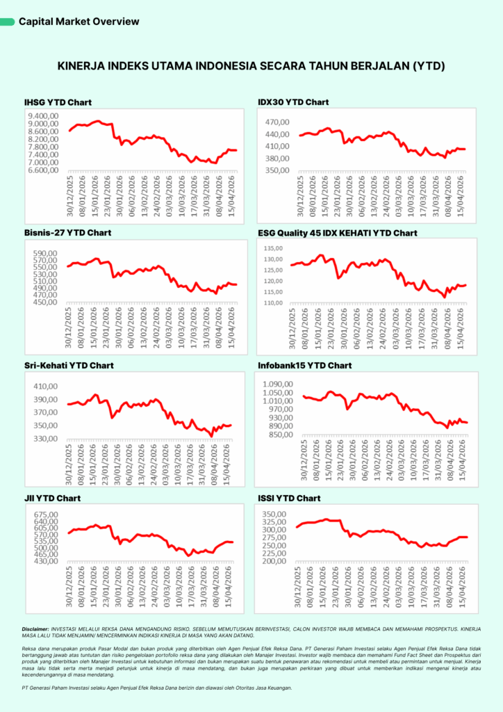 Reksa dana merupakan produk Pasar Modal dan bukan produk yang diterbitkan oleh Agen Penjual Efek Reksa Dana. PT Generasi Paham Investasi selaku Agen Penjual Efek Reksa Dana tidak bertanggung jawab atas tuntutan dan risiko pengelolaan portofolio reksa dana yang dilakukan oleh Manajer Investasi. Investor wajib membaca dan memahami Fund Fact Sheet dan Prospektus dari produk yang diterbitkan oleh Manajer Investasi untuk kebutuhan informasi dan bukan merupakan suatu bentuk penawaran atau rekomendasi untuk membeli atau permintaan untuk menjual. Kinerja masa lalu tidak serta merta menjadi petunjuk untuk kinerja di masa mendatang, dan bukan juga merupakan perkiraan yang dibuat untuk memberikan indikasi mengenai kinerja atau kecenderungannya di masa mendatang.