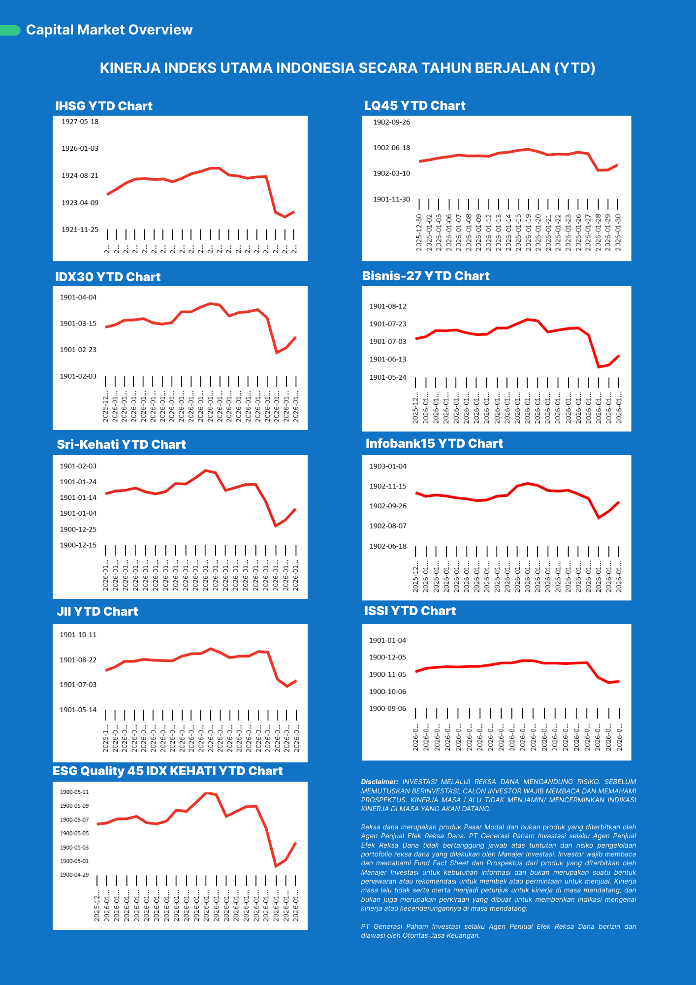 Reksa dana merupakan produk Pasar Modal dan bukan produk yang diterbitkan oleh Agen Penjual Efek Reksa Dana. PT Generasi Paham Investasi selaku Agen Penjual Efek Reksa Dana tidak bertanggung jawab atas tuntutan dan risiko pengelolaan portofolio reksa dana yang dilakukan oleh Manajer Investasi. Investor wajib membaca dan memahami Laporan Kinerja Reksa Dana (Fund Fact Sheet) dan Prospektus dari produk yang diterbitkan oleh Manajer Investasi untuk kebutuhan informasi dan bukan merupakan suatu bentuk penawaran atau rekomendasi untuk membeli atau permintaan untuk menjual. Kinerja masa lalu tidak serta merta menjadi petunjuk untuk kinerja di masa mendatang, dan bukan juga merupakan perkiraan yang dibuat untuk memberikan indikasi mengenai kinerja atau kecenderungannya di masa mendatang.