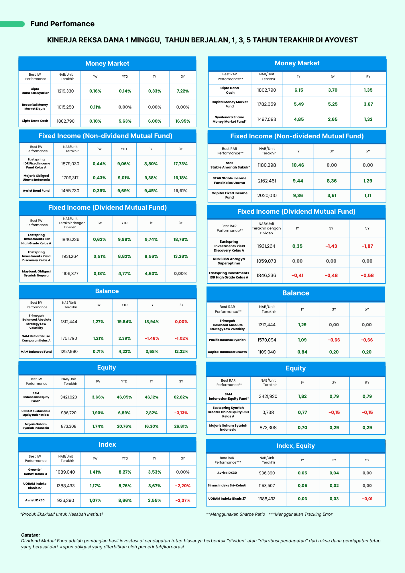Dalam suasana pasar yang masih penuh tarik uluran arah, investor reksa dana perlu menyusun langkah dengan lebih tenang dan terarah. Pada Pendapatan Tetap, peluang masih terlihat cerah karena penurunan yield obligasi pemerintah menunjukkan harga obligasi yang kembali menguat. Ditambah lagi dengan harapan bahwa bank-bank sentral dunia mulai melonggarkan suku bunga, ruang bagi kinerja reksa dana pendapatan tetap semakin terbuka. Ini membuat strategi menambah porsi secara bertahap pada instrumen berjangka menengah hingga panjang menjadi pilihan yang masuk akal bagi mereka yang mencari kestabilan di tengah dinamika global. Untuk Reksa Dana Saham, dengan adanyaKenaikan IHSG dan kondisi domestik yang stabil memberi dasar bagi investor untuk fokus pada reksa dana yang portofolionya memiliki saham big caps defensif (bank, konsumsi non siklikal c, telekomunikasi). Sementara itu, Reksa Dana Pasar Uang tetap menjadi tempat persinggahan yang aman bagi dana jangka pendek, terutama bagi investor yang masih menunggu kejelasan arah The Fed sebelum beranjak ke instrumen lain. Pada akhirnya, kunci keberhasilan tetap terletak pada hal-hal mendasar, antara lain menjaga diversifikasi, berinvestasi secara bertahap dengan sistem Rupiah Cost Averaging namun tetap menyesuaikan investasi dengan horizon waktu tanpa mudah terpengaruh oleh gejolak pasar sesaat.