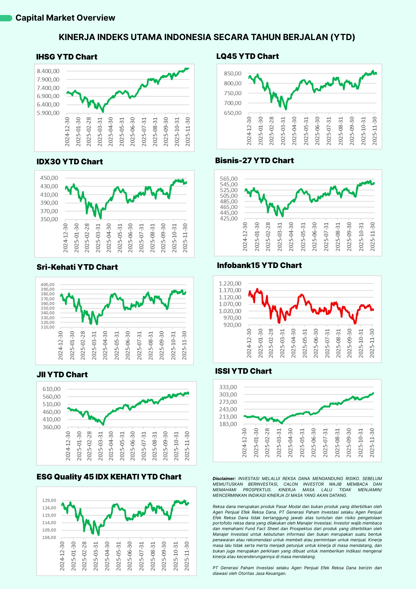 Di tengah turbulensi global, pasar domestik justru menunjukkan kinerja yang relatif stabil. Yield obligasi pemerintah Indonesia bergerak turun, menandakan masuknya aliran dana asing serta meningkatnya kepercayaan terhadap arah kebijakan ekonomi makro nasional. Turunnya yield juga memperlihatkan bahwa risiko yang dipersepsikan investor terhadap Indonesia cenderung mereda.