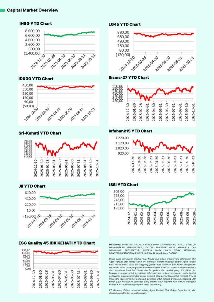 Reksa dana merupakan produk Pasar Modal dan bukan produk yang diterbitkan oleh Agen Penjual Efek Reksa Dana. PT Generasi Paham Investasi selaku Agen Penjual Efek Reksa Dana tidak bertanggung jawab atas tuntutan dan risiko pengelolaan portofolio reksa dana yang dilakukan oleh Manajer Investasi. Investor wajib membaca dan memahami Laporan Kinerja Reksa Dana (Fund Fact Sheet) dan Prospektus dari produk yang diterbitkan oleh Manajer Investasi untuk kebutuhan informasi dan bukan merupakan suatu bentuk penawaran atau rekomendasi untuk membeli atau permintaan untuk menjual. Kinerja masa lalu tidak serta merta menjadi petunjuk untuk kinerja di masa mendatang, dan bukan juga merupakan perkiraan yang dibuat untuk memberikan indikasi mengenai kinerja atau kecenderungannya di masa mendatang.