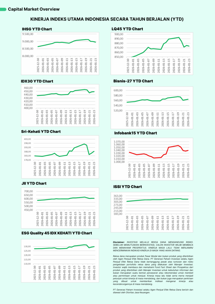 Reksa dana merupakan produk Pasar Modal dan bukan produk yang diterbitkan oleh Agen Penjual Efek Reksa Dana. PT Generasi Paham Investasi selaku Agen Penjual Efek Reksa Dana tidak bertanggung jawab atas tuntutan dan risiko pengelolaan portofolio reksa dana yang dilakukan oleh Manajer Investasi. Investor wajib membaca dan memahami Laporan Kinerja Reksa Dana (Fund Fact Sheet) dan Prospektus dari produk yang diterbitkan oleh Manajer Investasi untuk kebutuhan informasi dan bukan merupakan suatu bentuk penawaran atau rekomendasi untuk membeli atau permintaan untuk menjual. Kinerja masa lalu tidak serta merta menjadi petunjuk untuk kinerja di masa mendatang, dan bukan juga merupakan perkiraan yang dibuat untuk memberikan indikasi mengenai kinerja atau kecenderungannya di masa mendatang.