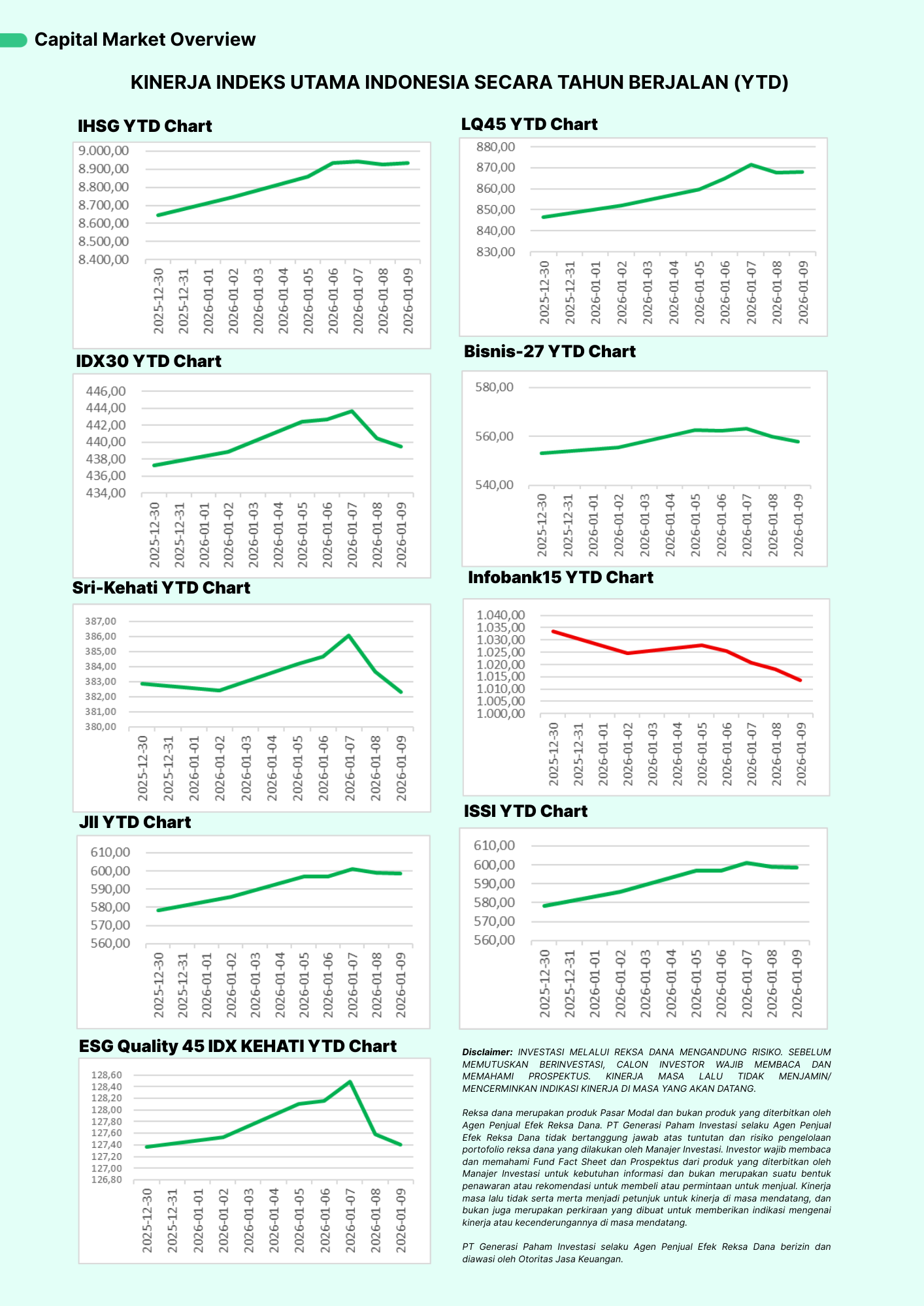 Memasuki awal 2026, pasar global berada dalam fase recalibration. Ketidakpastian arah suku bunga AS dan meningkatnya risiko geopolitik masih membayangi sentimen, namun di sisi domestik, fondasi makro yang solid memberikan ruang bagi stabilitas pasar keuangan. Kondisi ini mendukung persepsi positif terhadap fundamental Indonesia, meskipun kehati-hatian tetap menjadi kunci di tengah lanskap global yang belum sepenuhnya kondusif.