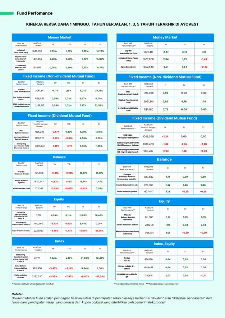 DISCLAIMER: INVESTASI MELALUI REKSA DANA MENGANDUNG RISIKO. SEBELUM MEMUTUSKAN BERINVESTASI, CALON INVESTOR WAJIB MEMBACA DAN MEMAHAMI PROSPEKTUS. KINERJA MASA LALU TIDAK MENJAMIN/ MENCERMINKAN INDIKASI KINERJA DI MASA YANG AKAN DATANG.