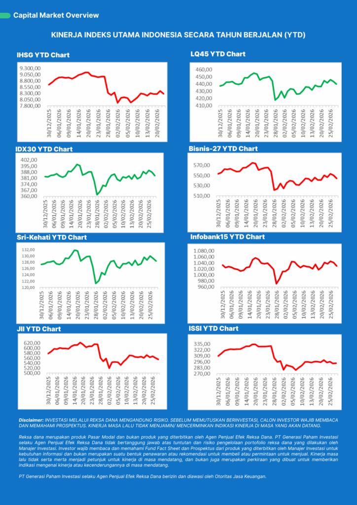 Reksa dana merupakan produk Pasar Modal dan bukan produk yang diterbitkan oleh Agen Penjual Efek Reksa Dana. PT Generasi Paham Investasi selaku Agen Penjual Efek Reksa Dana tidak bertanggung jawab atas tuntutan dan risiko pengelolaan portofolio reksa dana yang dilakukan oleh Manajer Investasi. Investor wajib membaca dan memahami Fund Fact Sheet dan Prospektus dari produk yang diterbitkan oleh Manajer Investasi untuk kebutuhan informasi dan bukan merupakan suatu bentuk penawaran atau rekomendasi untuk membeli atau permintaan untuk menjual. Kinerja masa lalu tidak serta merta menjadi petunjuk untuk kinerja di masa mendatang, dan bukan juga merupakan perkiraan yang dibuat untuk memberikan indikasi mengenai kinerja atau kecenderungannya di masa mendatang.