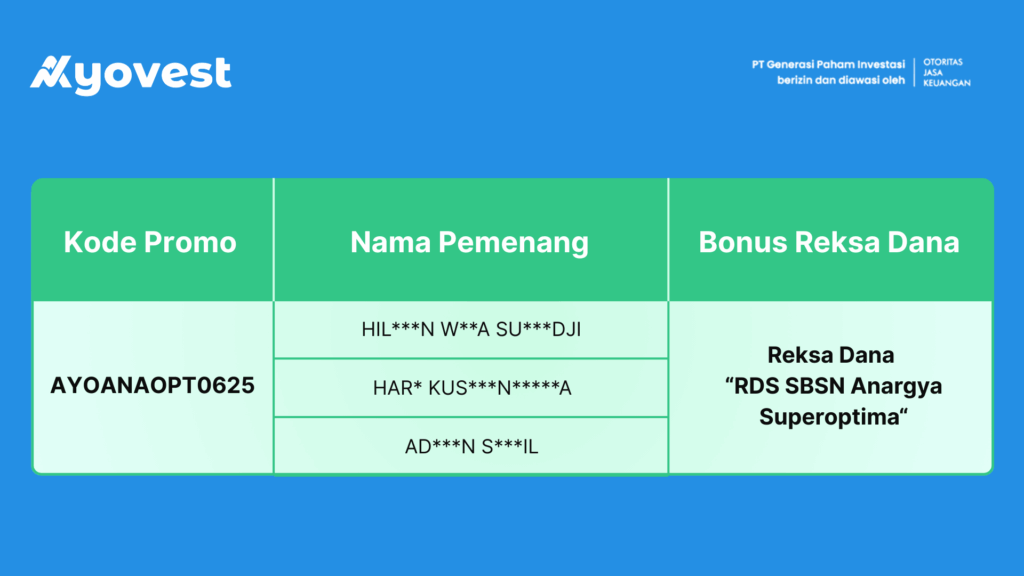 Sekarang, saatnya Ayovest mengumumkan para pemenang promo AYPANAOPT0625 di Ayovest. Lihat daftar nama pemenangnya berikut ini.