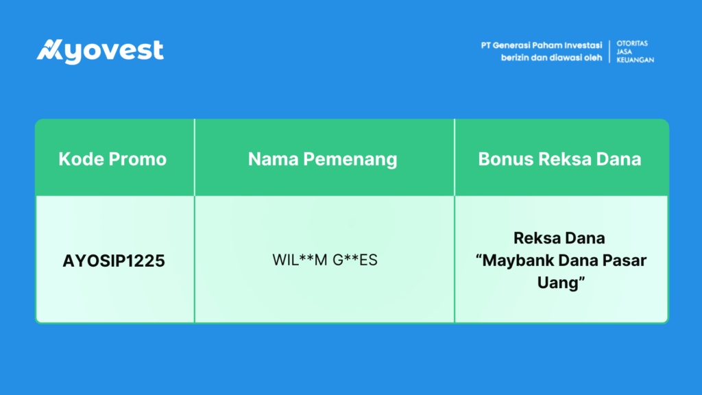 Artinya, Sovest bisa mendapatkan keuntungan sekitar 1% lebih tinggi apabila berinvestasi dengan SIP, terlebih keuntungan yang kamu dapat sudah bebas pajak. Kini saat yang ditunggu-tunggu telah tiba, berikut pemenang promo reksa dana SIP di Ayovest.